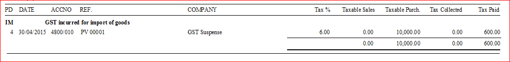 Here is the screenshot for first transaction (GST Input Tax, Tax code -IM and Taxable purchase)