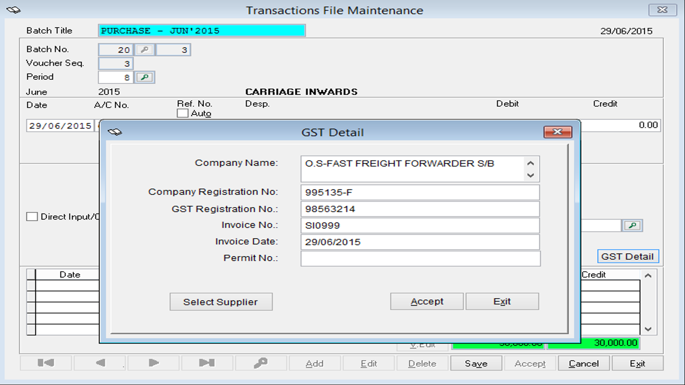 ~~Please note there is discrepancy on the GST paid on behalf in the Supplier invoice, (600) but recorded as (1,800) - as this example for illustration on the process only~~