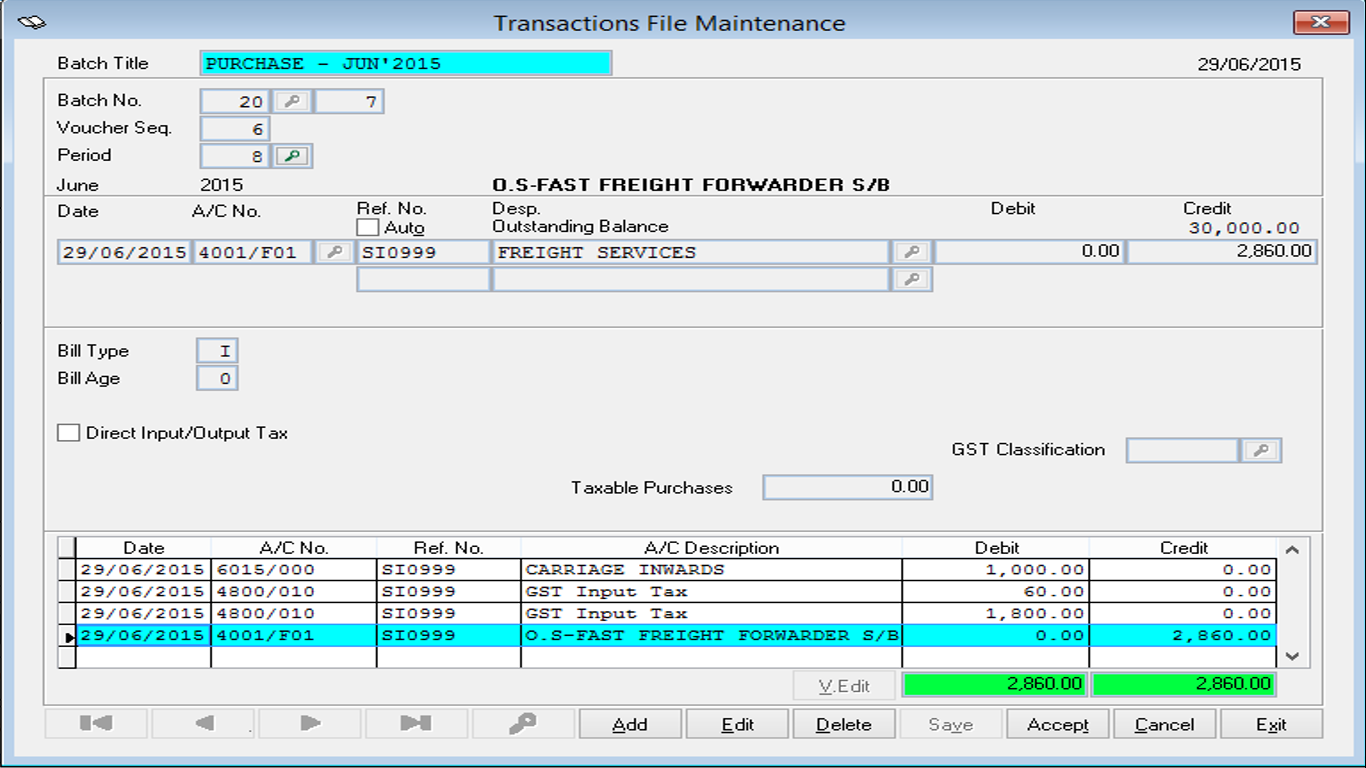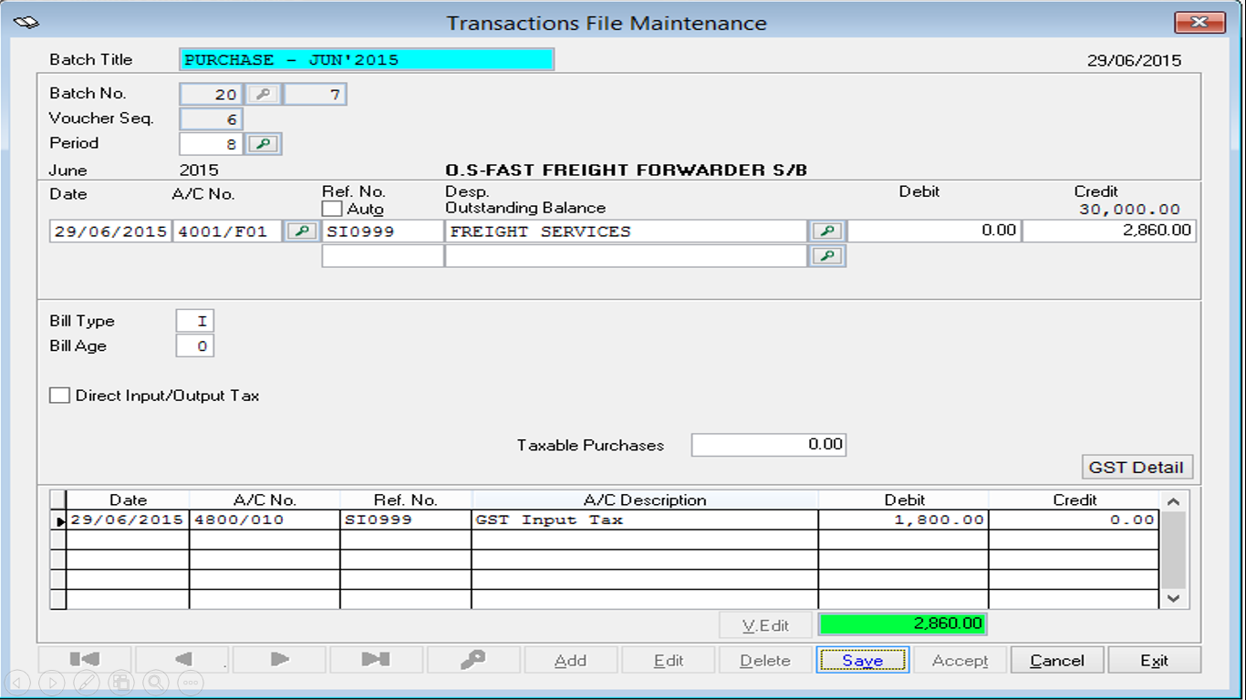 (a) For the Supplier Invoice , you can key in the transactions using add or quick method.