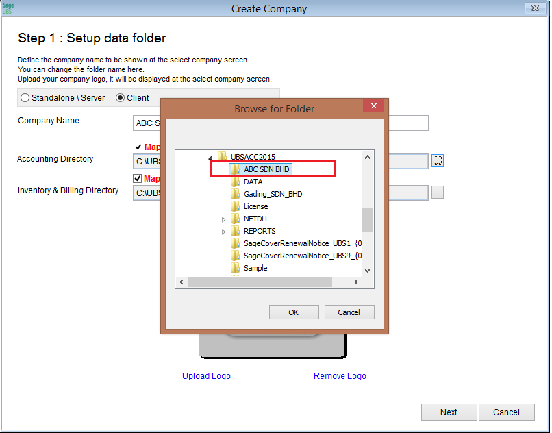icon & find UBSACC2015 ( this for accounting).This folder should in your server(in disk c:) refer to screenshot below: