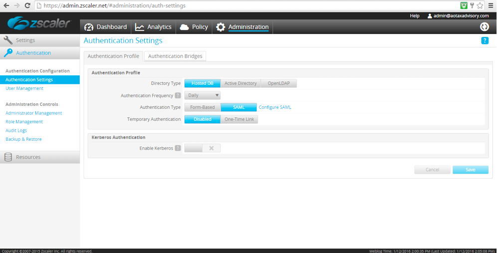 Click the The Authentication settings the window will pop up for Authentication setting purpose. The two Tab Menu Display inside Authentication Settings.