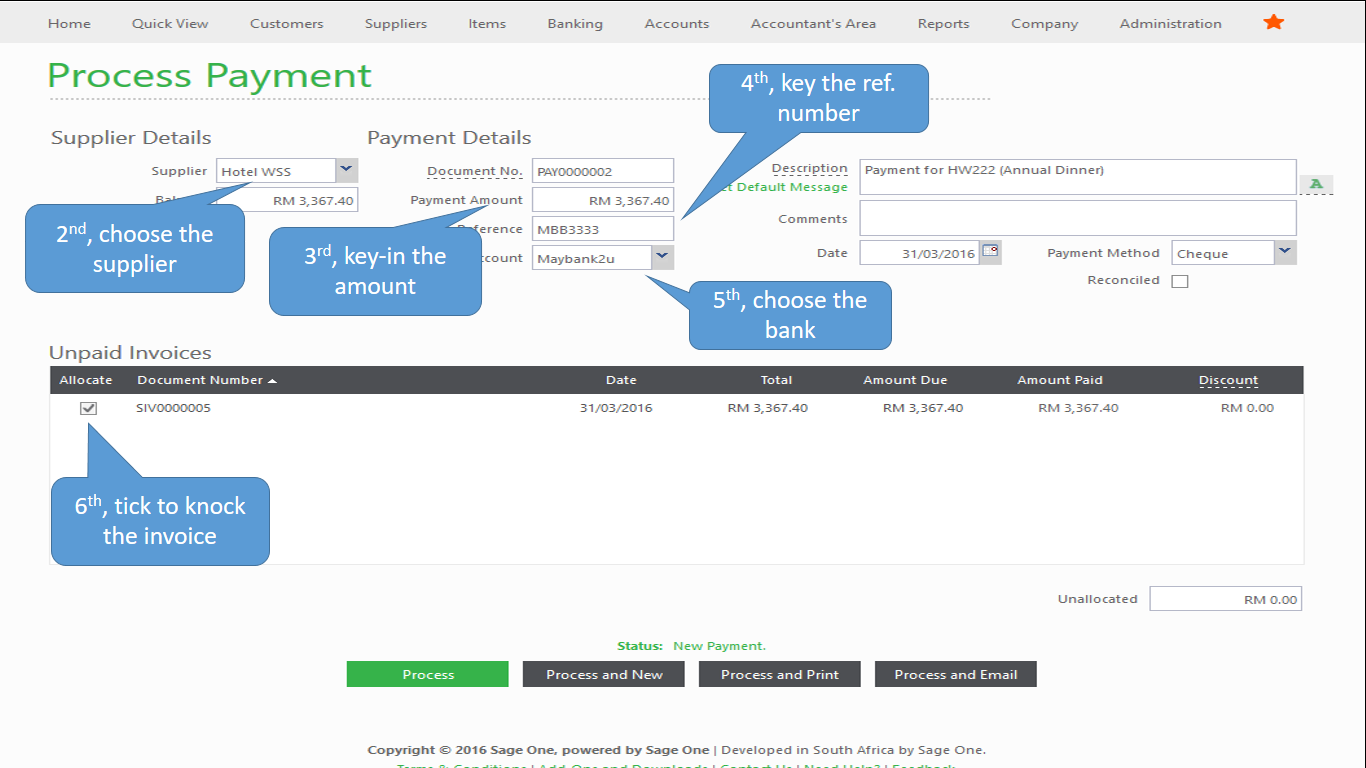 (A) Now, the accountant need to key-in those details as Supplier invoice via sage one. The steps are:
