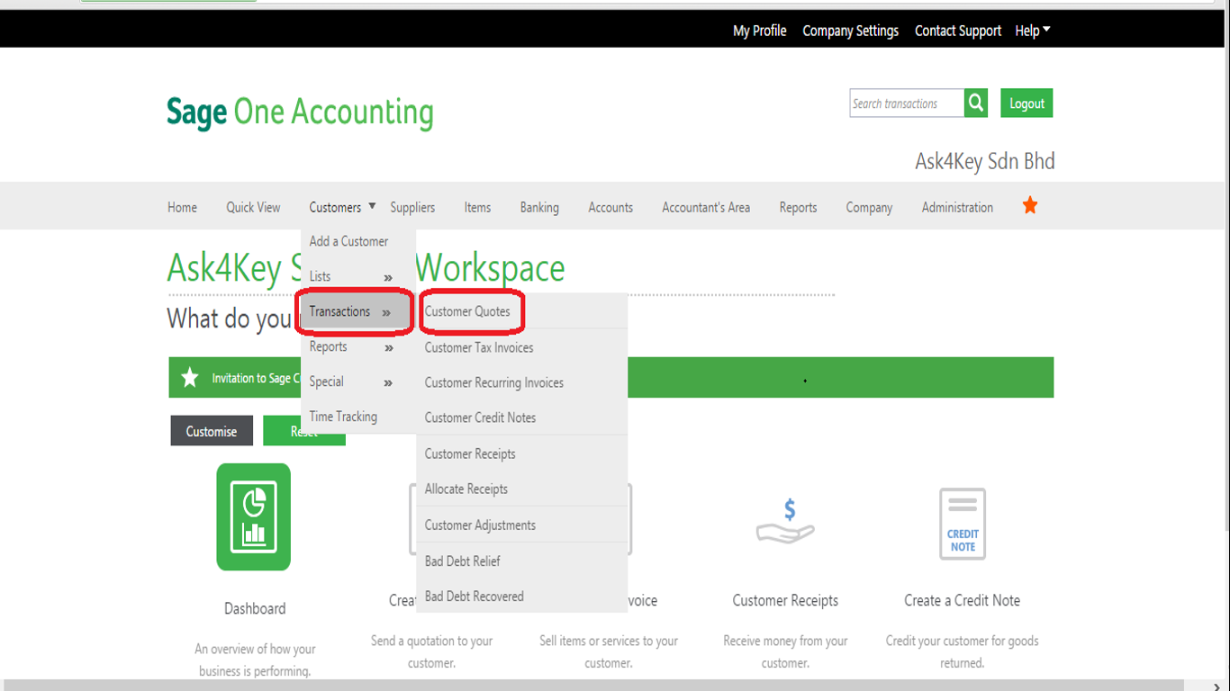 1. Go to Customers > Transactions > Customer Quotes.