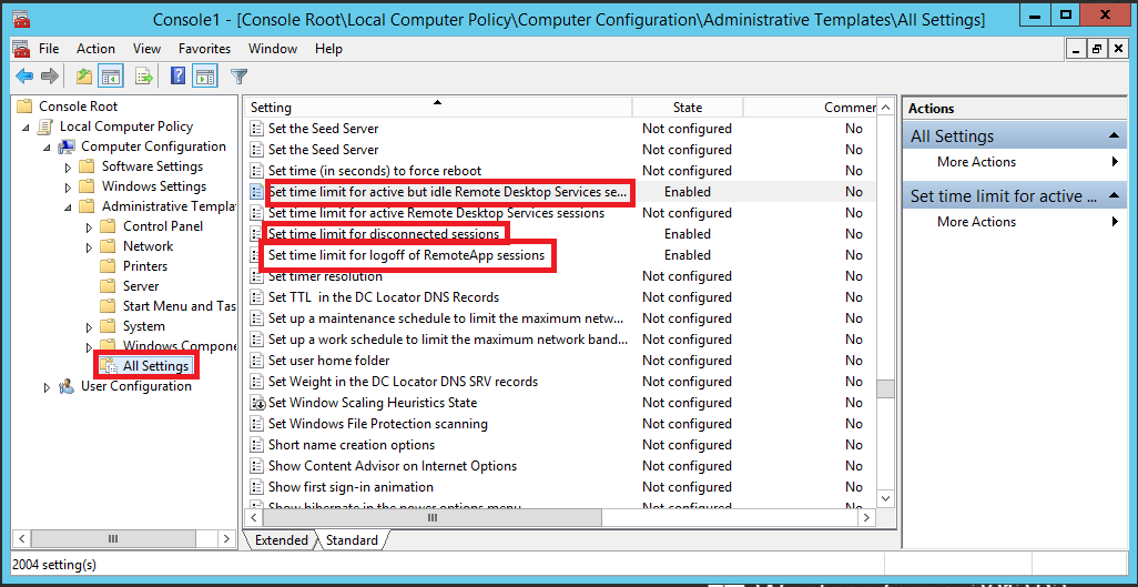 Console Root > Local Computer Policy > Computer Configuration > Administrative Template > All Setting.