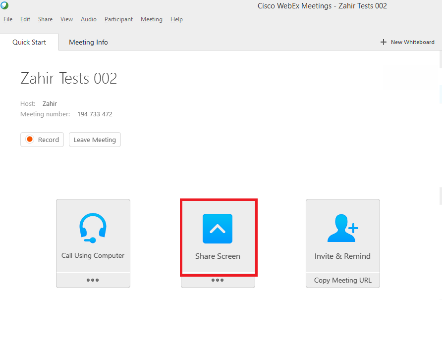 9. Now click the Share Screen to let us see your Desktop Screen.