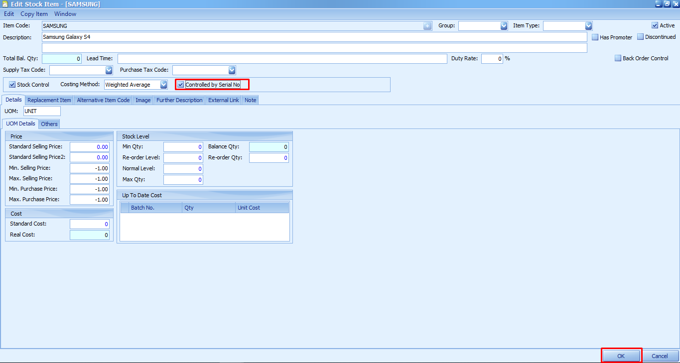 Step 2: For the target item tick Controlled by Serial No., then press OK.