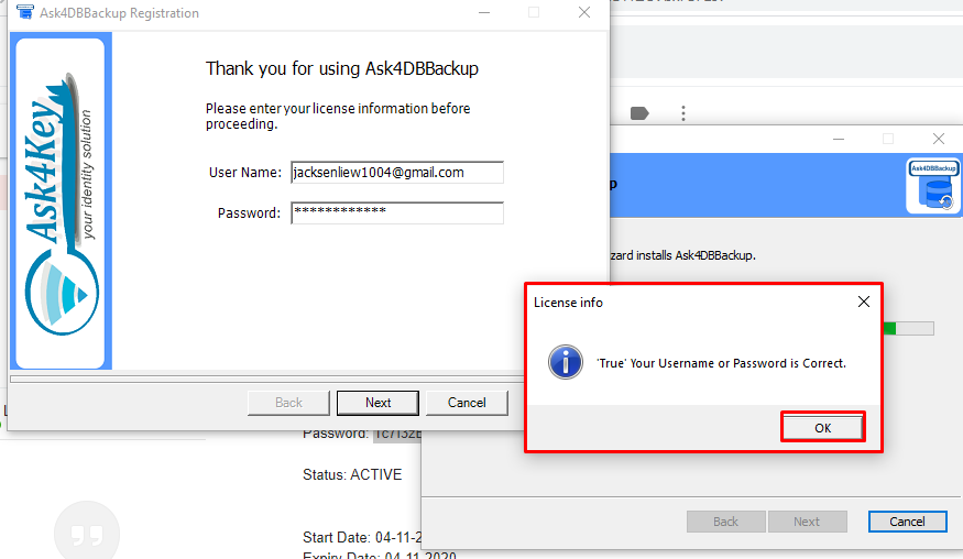 1. User(s) must register themselves before installing Ask4DBBackup program.