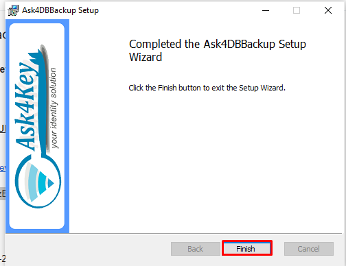 An installation of Ask4DBBackup program is complete. Click on Finish to close the wizard.